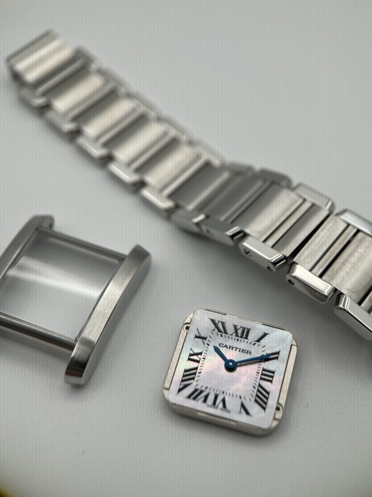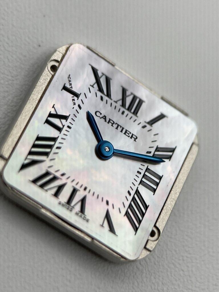 文字盤がシェルとなっており、この機種のシェルはとても割れやすいためかなり慎重に作業致しました。